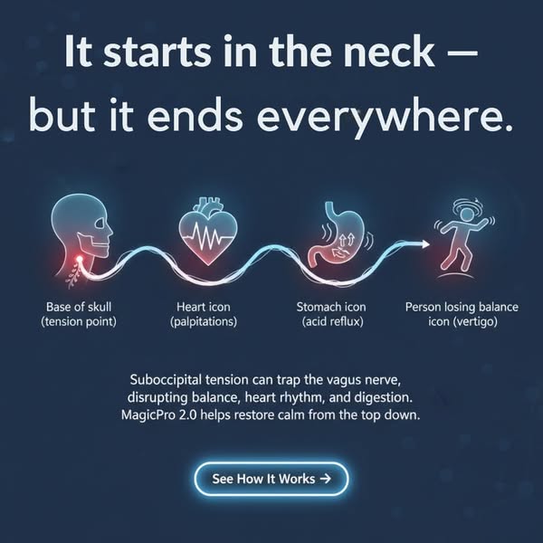 For many people, they start with hidden tension and compression at the top of the neck, right where the vagus nerve and other sensitive structures pass. If you don’t calm that area, you just keep chasing symptoms.